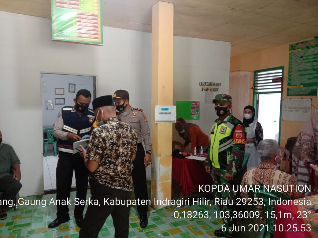 Kopda Umar Nasution Babinsa Koramil 05/Gas Kodim 0314/Inhil Bantu Penyuntikan Vaksin Covid -19 kepada Lansia