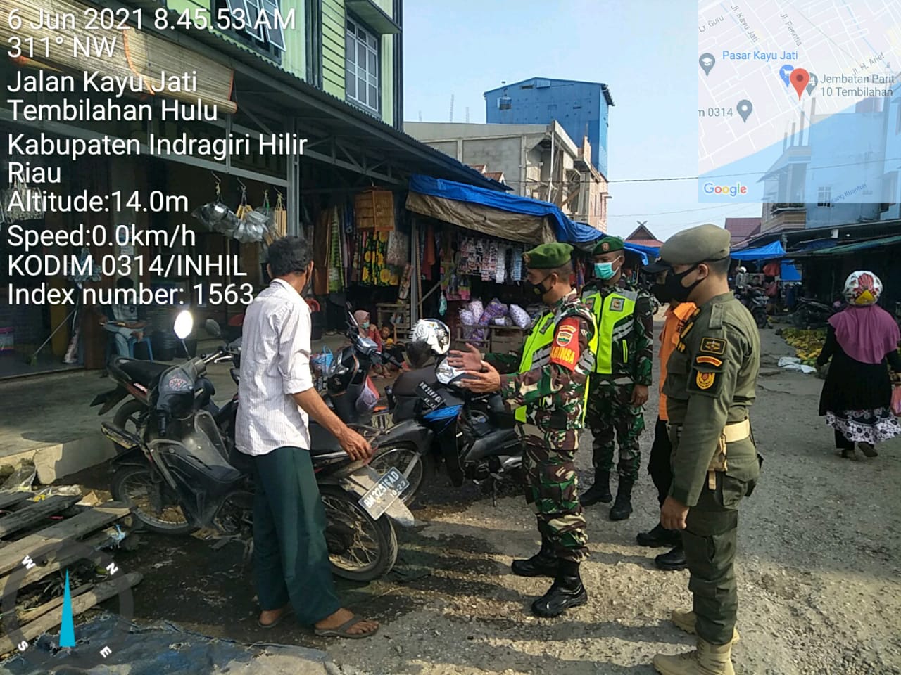 SERIBUPARITNEWS.COM, TEMBILAHANHULU - Sertu Zulfahri  Babinsa Koramil 01/Tembilahan Bersama Satpol PP Inhil Melaksanakan Penegakkan Disiplin Protokol Kesehatan Minggu  (06/06/2021)