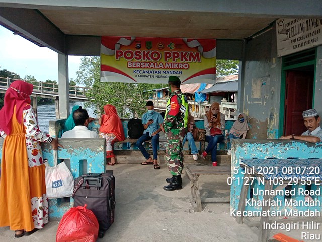 SERIBUPARITNEWS.COM, MANDAH - Babinsa Koramil 08/Mandah Kodim 0314/Inhil Koptu Adlis melaksanakan penegakan protokol kesehatan dengan masyarakat Sabtu (05/06/2021