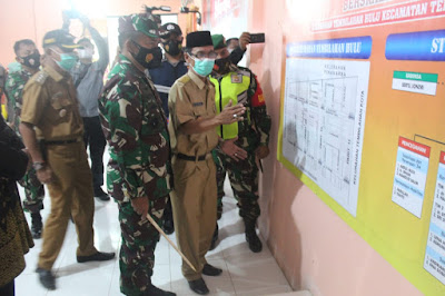 SERIBUPARITNEWS.COM,TEMBILAHAN, - Setelah melaksanakan silaturahmi ke kediaman Bupati lnhil dan melaksanakan tradisi tepuk tepung tawar serta memberikan tali asih kepada Yayasan Pondok Lansia, Pangdam l/Bukit Barisan Mayjen TNI Hassanudin,S.IP.,MM beserta rombongan Forkopimda lnhil melaksanakan pengecekan Pos PPKM di Kantor Kelurahan Tembilahan Hulu, jalan Telaga Biru Tembilahan Hulu, Jum'at (4/06/2021).