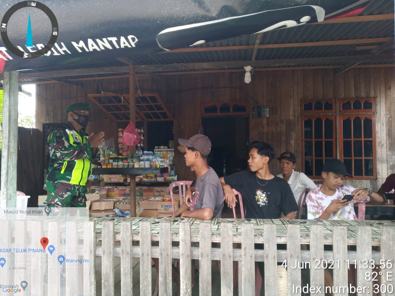 Serma Tota Simbolon Babinsa Koramil 05/Gas Kodim 0314/Inhil Himbau Pengunjung Kedai Pakai Masker