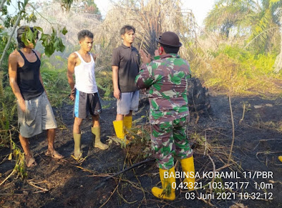 SERIBUPARITNEWS.COM,PULAUBURUNG - Anggota Koramil 11/Pulau Burung Kodim 0314/Inhil dipimpin oleh Sertu Yanuarsyah melaksanakan Kegiatan sosialisasi dan patroli karhutla di Desa Pulau Burung Kecamatan Pulau Burung Kab Inhil Kamis (03/06/2021)