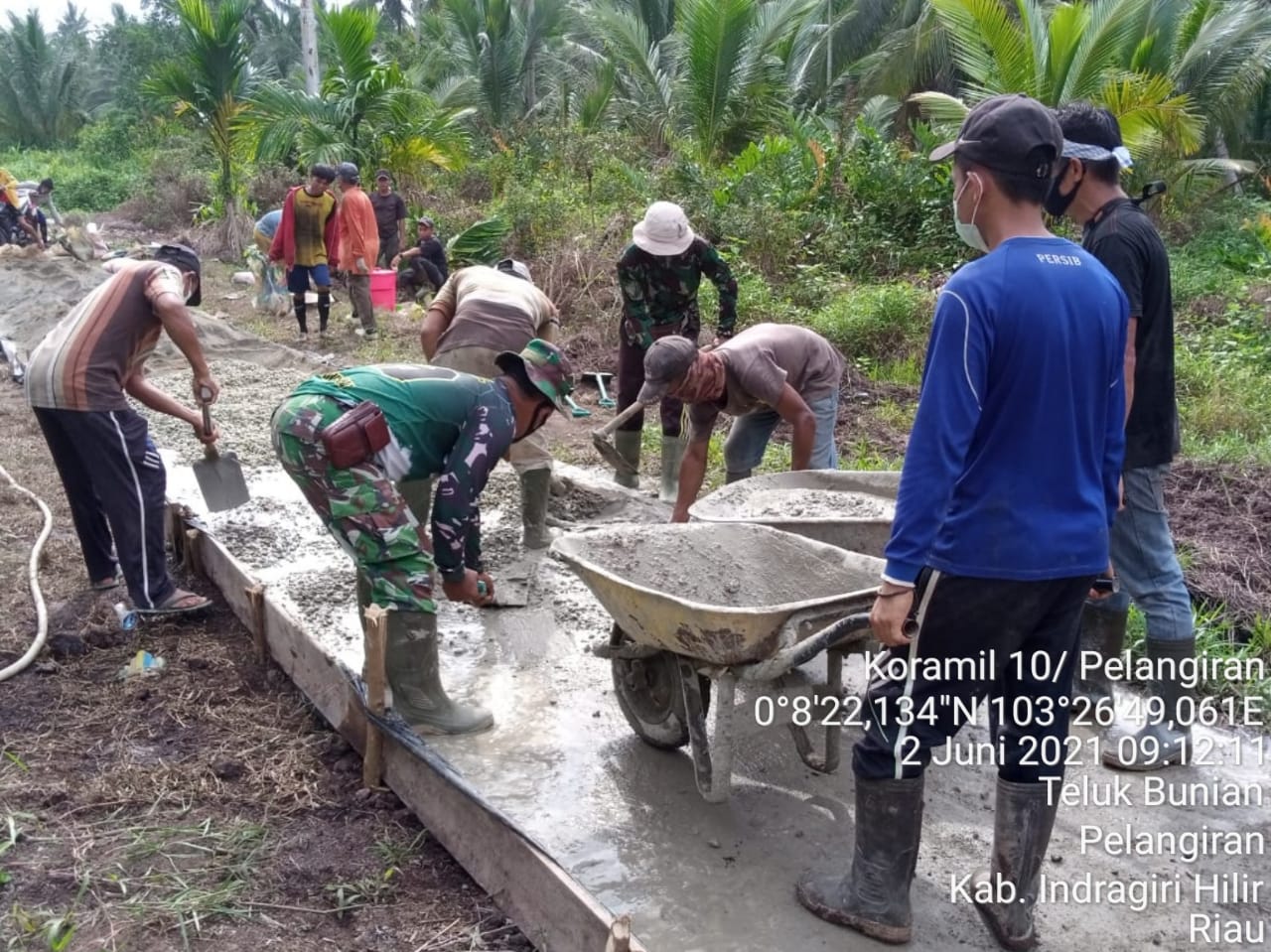 Serka Sugianto Babinsa Koramil 10/Pelangiran Kodim 0314/Inhil Terus Meningkatan Realisasi Fisik Semenisasi Jalan