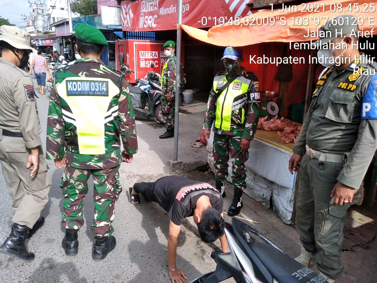 SERIBUPARITNEWS.COM,TEMBILAHAN - Sertu Surahman Babinsa Koramil 01/Tembilahan Kodim 0314/Inhil bersama Tim melaksanakan kegiatan Penegakan Disiplin Protkes dan penyekatan mobilitas Masyarakat Selasa (01/06/2021)