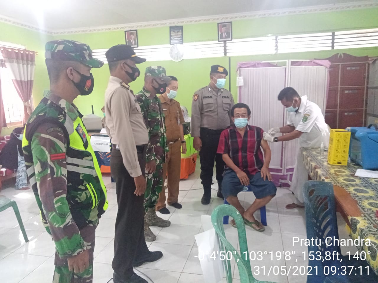 SERIBUPARITNEWS.COM, GAUNG - Babinsa Koramil 05/Gas Kodim 0314/Inhil dipimpin Serma Tota Simbolon bersama babinkamtibmas melaksanakan pendampingan penyuntikan vaksin sinovak Senin (31/05/2021)
