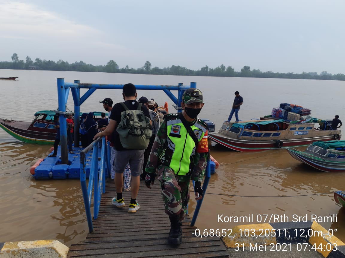 SERIBUPARITNEWS.COM, Pulau Kijang," – Dalam menekan angka penularan Covid-19 di Wilayah Koramil 07/Reteh Babinsa Serma Noviandi dan Serda Ramli melakukan pemantauan Pos pelabuhan dan pasar tradisional Pulau Kijang Kec Reteh. (31/04/21).