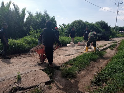 SERIBUPARITNEWS.COM, PULAUBURUNG - Babinsa Koramil 11/Pulau Burung Kodim 0314/Inhil Melaksanakan Kegiatan Goro Goro Penimbunan Jalan Umum yang Berlubang Minggu (30/05/2021