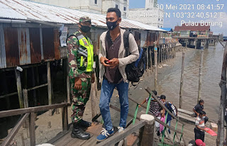 Hal tersebut dilakukan Serda Supandi melaksanakan pengecekkan kepada penumpang di Pelabuhan 00 Pulau Burung Minggu (30/05/2021)