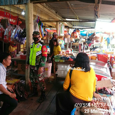 SERIBUPARITNEWS.COM, MANDAH - Babinsa Koramil 08/Mandah Serma M.Darmansyah melaksanakan kegiatan Penegakan disiplin protokol kesehatan covid  Sabtu (29/05/2021)
