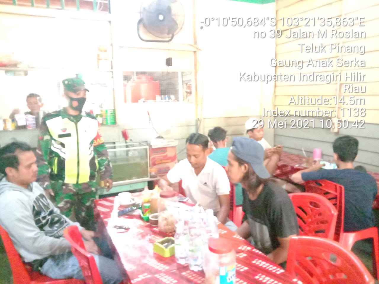 SERIBUPARITNEWS.COM, GAUNG ANAK SERKA - Di hari Sabtu yang ceria ini , Babinsa Koramil 05/Gas, Kopda Umar memperketat penegakan disiplin protokol kesehatan Sabtu (29/05/2021)