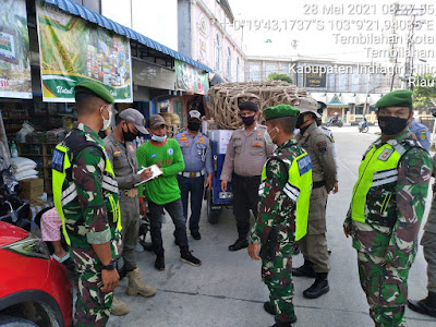 SERIBUPARITNEWS.COM,TEMBILAHAN - Serda Suherman Babinsa Koramil 01/Tembilahan Kodim 0314/Inhil  Bersama Tim Melaksanakan  kegiatan Penegakan Disiplin Protkes dan penyekatan mobilitas Masyarakat Jumat (28/05/2021)