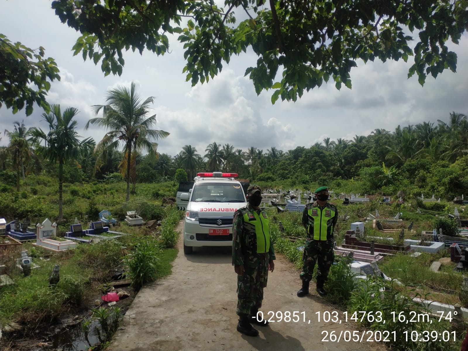 Pelda Indra Mukri Babinsa Koramil 01/Tembilahan Kodim 0314/Inhil Terapkan Protokes dalamPemakaman Pasien Covid 19