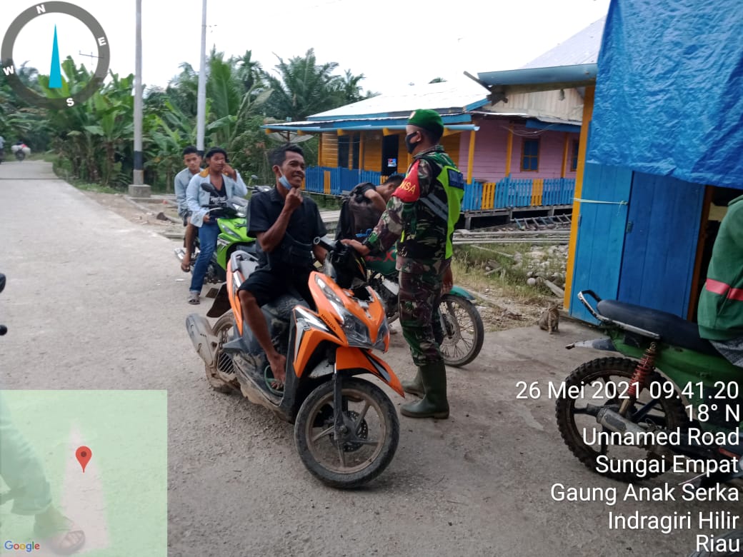 Kopda Hutrizarroni Babinsa Koramil 05/Gas Kodim 0314/Inhil Pantau Pengguna Jalan dalam Mentaati Protokes