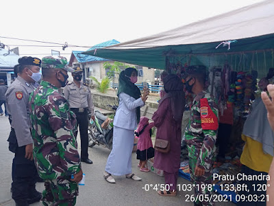 Babinsa menghimbau warga agar memakai masker dan menjaga jarak