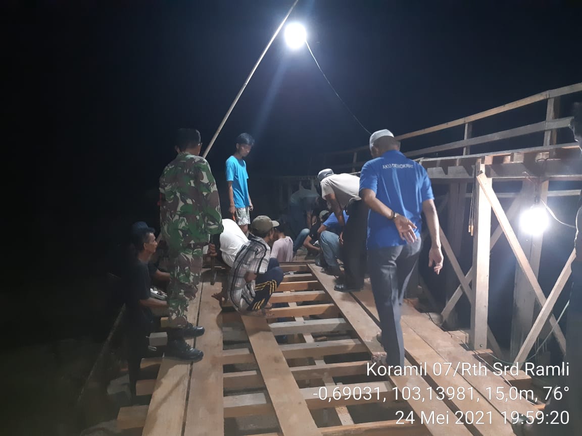 Bahu Membahu Bersama Masyarakat Babinsa 07/ Reteh Laksanakan Goro dan Bangun Jembatan Darurat