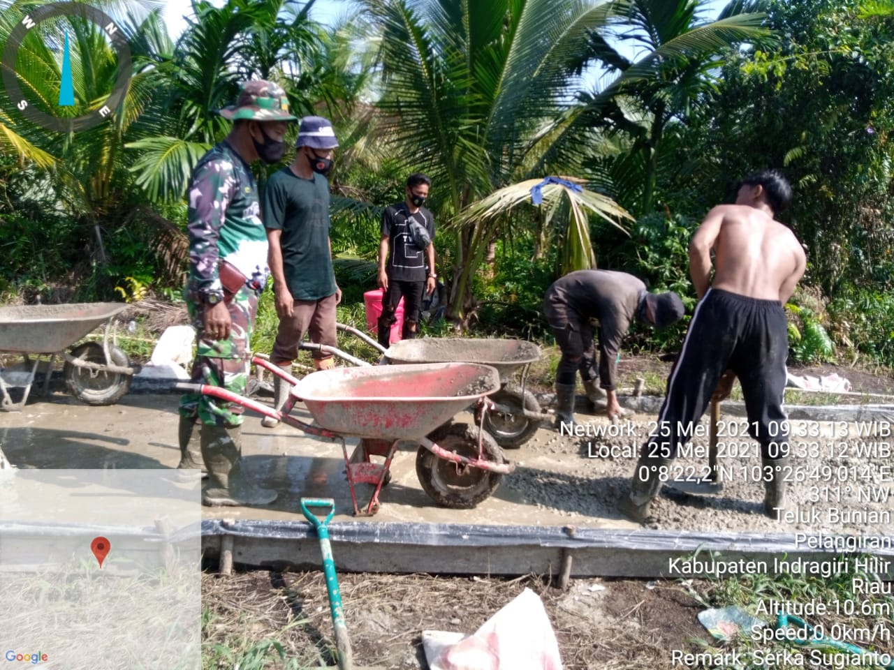 Serka Sugianto Babinsa Koramil 10/Pelangiran Kodim 0314/Inhil Melanjutkan Semenisasi Jalan Pra TMMD 2021