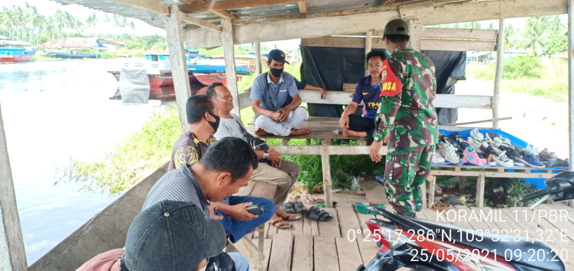 SERIBUPARITNEWS.COM,PULAUBURUNG - Babinsa Koramil 11/Pulau Burung Sertu Arif D bersama warga melaksanakan komunikasi sosial Selasa (25/05/2021)