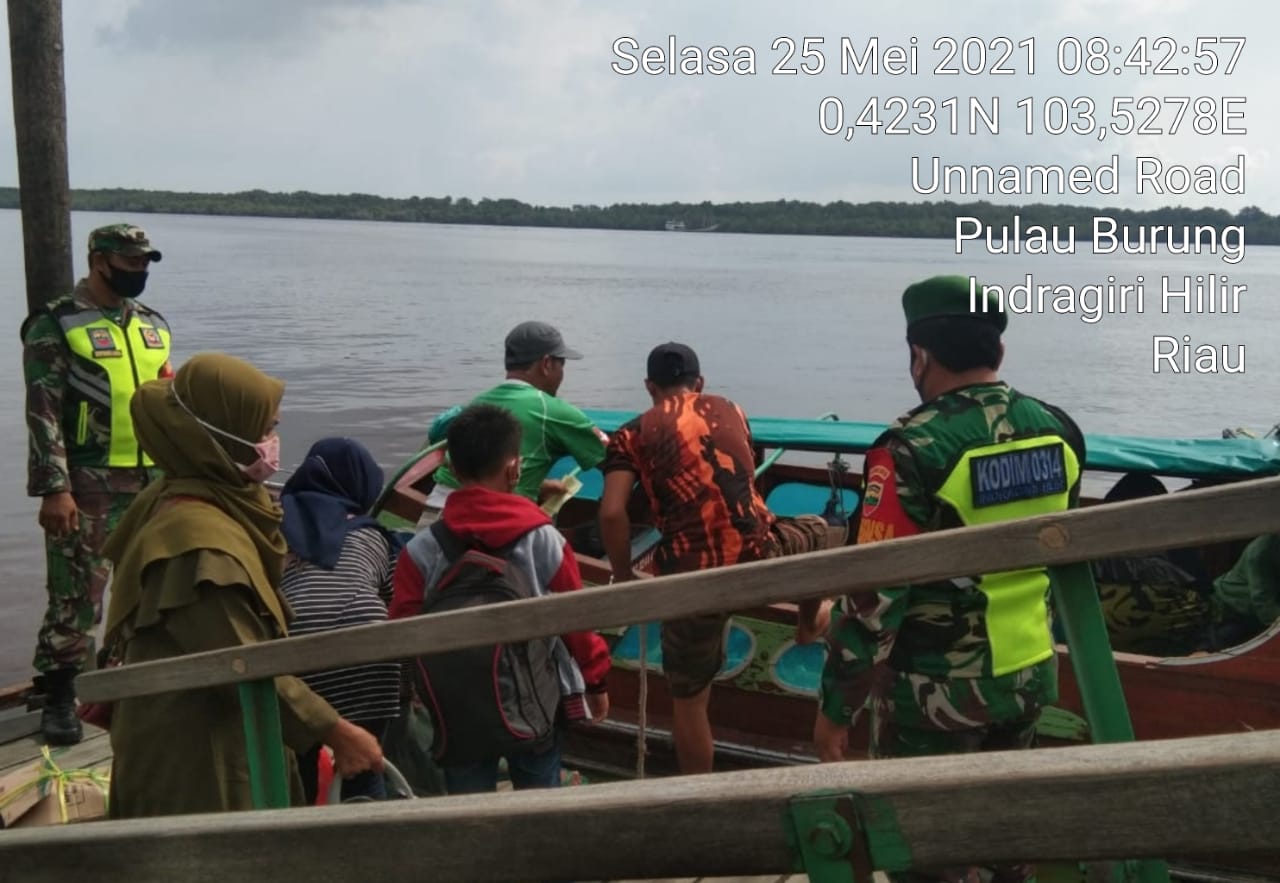 SERIBUPARITNEWS.COM, PULAUBURUNG - Babinsa Koramil 11/Pulau Burung Kodim 0314/Inhil Sertu Yanuarsyah bersama Tim  Gugus Tugas Covid-19 Kecamatan Melaksanakan Pemeriksaaan kepada Penumpang Selasa  (25/05/2021)