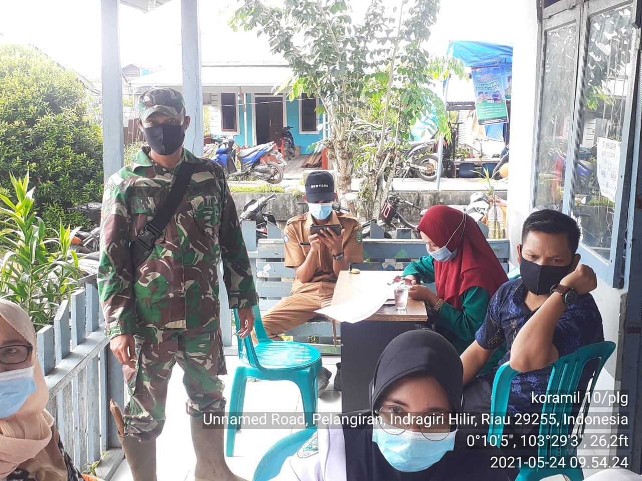 SERIBUPARITNEWS.COM, PELANGIRAN - Babinsa Koramil 10/Pelangiran Kodim 0314/Inhil Kopda Dodimen melaksanakan kegiatan pendampingan penyuntikan Vaksin Sinovak multidosis Senin (24/05/2021)