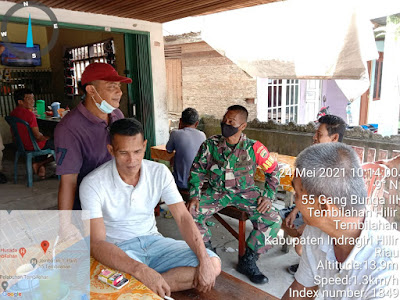 SERIBUPARITNEWS.COM, TEMBILAHAN - Babinsa Koramil 01/Tembilahan Kodim 0314/Inhil Pelda Jaharzam melaksanakan Komsos Senin (24/05/2021)