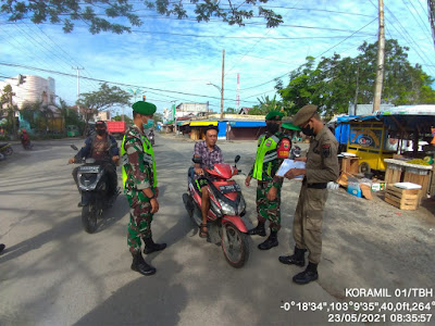 SERIBUPARITNEWS.COM, TEMBILAHAN - Di Hari Minggu  ini, Kopda Komarudin tetap melaksanakan   Penegakan Disiplin protokol kesehatan Minggu   (23/05/2021)