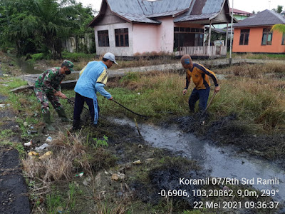 SERIBUPARITNEWS.COM,Reteh," - Sebagai upaya untuk memperlancar aliran air agar tidak terjadi banjir saat musim hujan, Serda Ramli Babinsa Koramil 07/Reteh Kodim 0314 / Inhil melaksanakan karya bhakti membersihkan parit, gorong-gorong, dan saluran air di sepanjang jalan kelurahan pulau kijang, Sabtu  (22/05/2021).