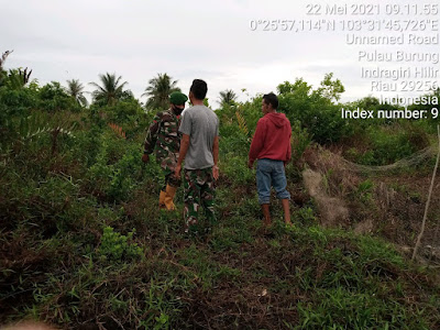 SERIBUPARITNEWS.COM, PULAUBURUNG - Babinsa Koramil 11/Pulau Burung Kodim 0314/Inhil  Praka Dedi Hariawan melaksanakan kegiatan  patroli dan sosialisasi karhutla Sabtu (22/05/2021)