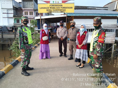 Babinsa Koramil 07/Reteh Serma Noviandi Serda Surya Wibowo dan Koptu R.H Tambunan yang bekerja sama dengan Polsek Reteh Sat Pol PP dan Team Kesehatan dan Relawan terus berjuang di dalam pemutusan mata rantai covid 19 di Kecamatan Reteh,.