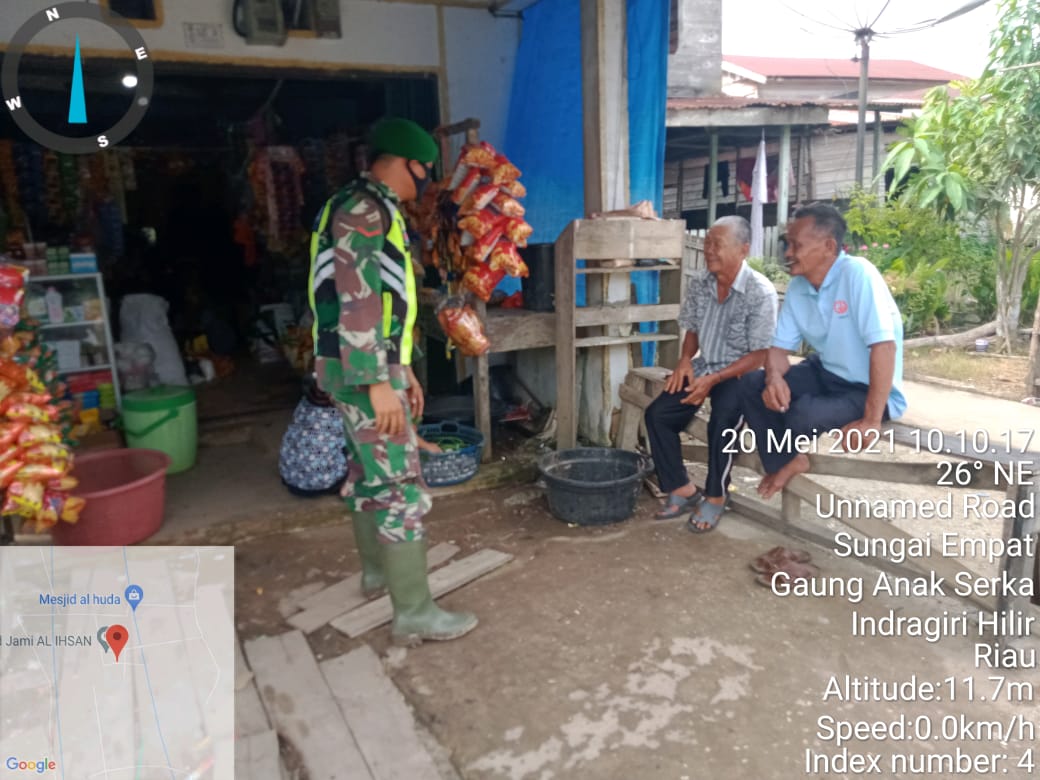 Kopda Hutrizaroni melaksanakan himbauan dan sosialisasi mengenai protokol kesehatan kepada warga Kamis (20/05/2021)