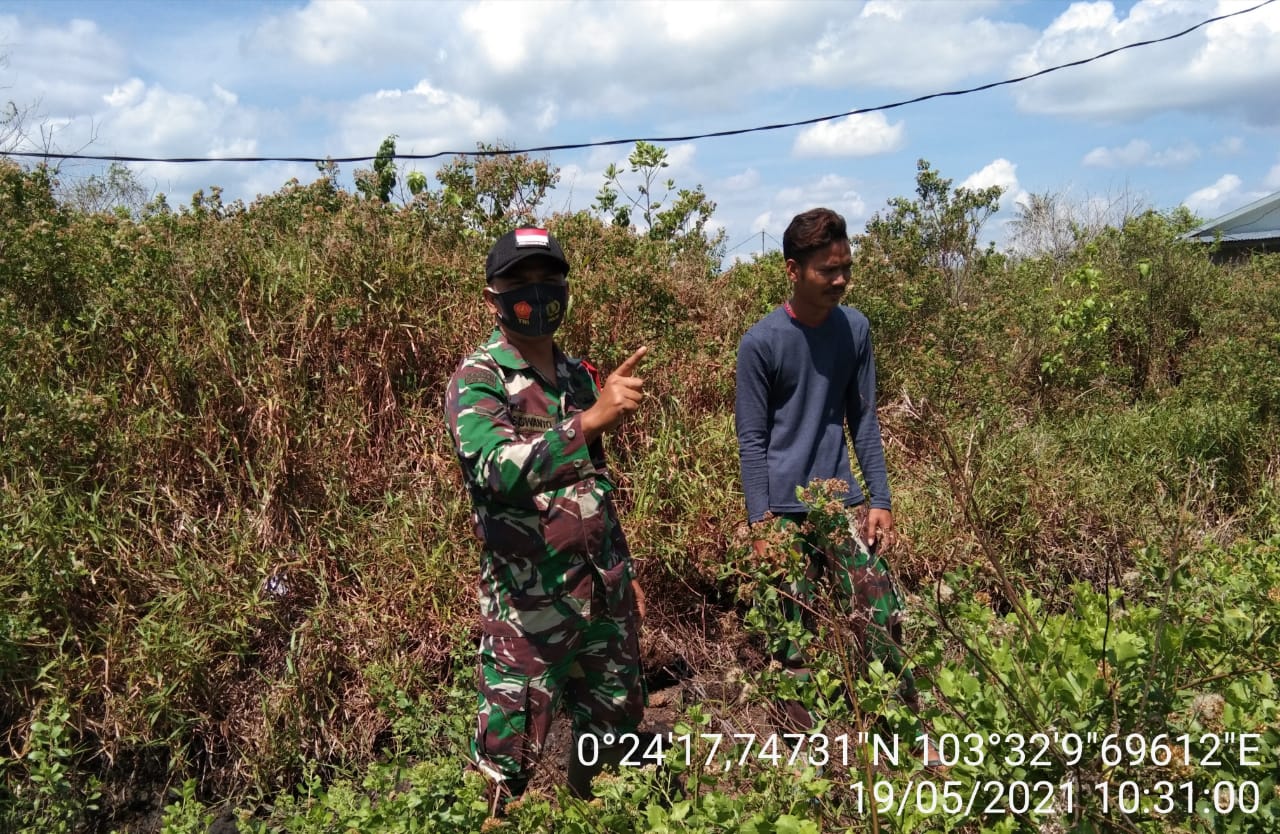 SERIBUPARITNEWS.COM, PULAUBURUNG - Sebagai Wujud antisipasi Pencegahan karhutlah di Desanya, Babinsa Koramil 11/Pulau Burung  Serda Siswanto bersama warga melaksanakan patroli dan sosialisasi karhutla Rabu (19/05/2021)