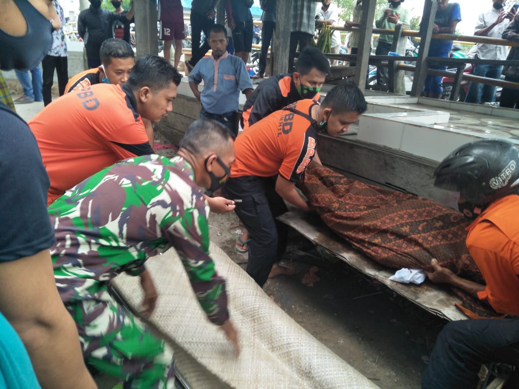 Sekitar 30 menit kemudian tim dari BPBD Tembilahan  tiba dilokasi kejadian dan melakukan pencarian terhadap korban dibantu babinsa dan masyarakat sehingga pada pukul 06.40 WIB korban ditemukan dalam keadaan sudah tidak bernyawa lagi dan pada pukul 07.12 WIB korban langsung dievakuasi ke Rumah duka karna pihak keluarga sudah menerima dengan musibah yang dialami korban tersebut.
