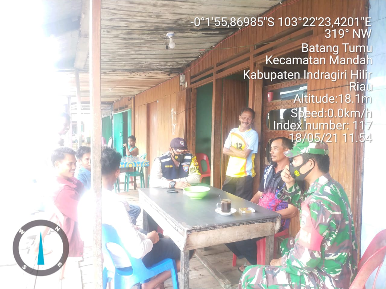 SERIBUPARITNEWS.COM, MANDAH -  Babinsa Batang Tumu Koramil 08/Mandah Kodim 0314/Inhil  Serda Tulus L. Gaol melaksanakan Komsos bersama Bhabinkamtibmas dengan warga Selasa (17/05/2021)