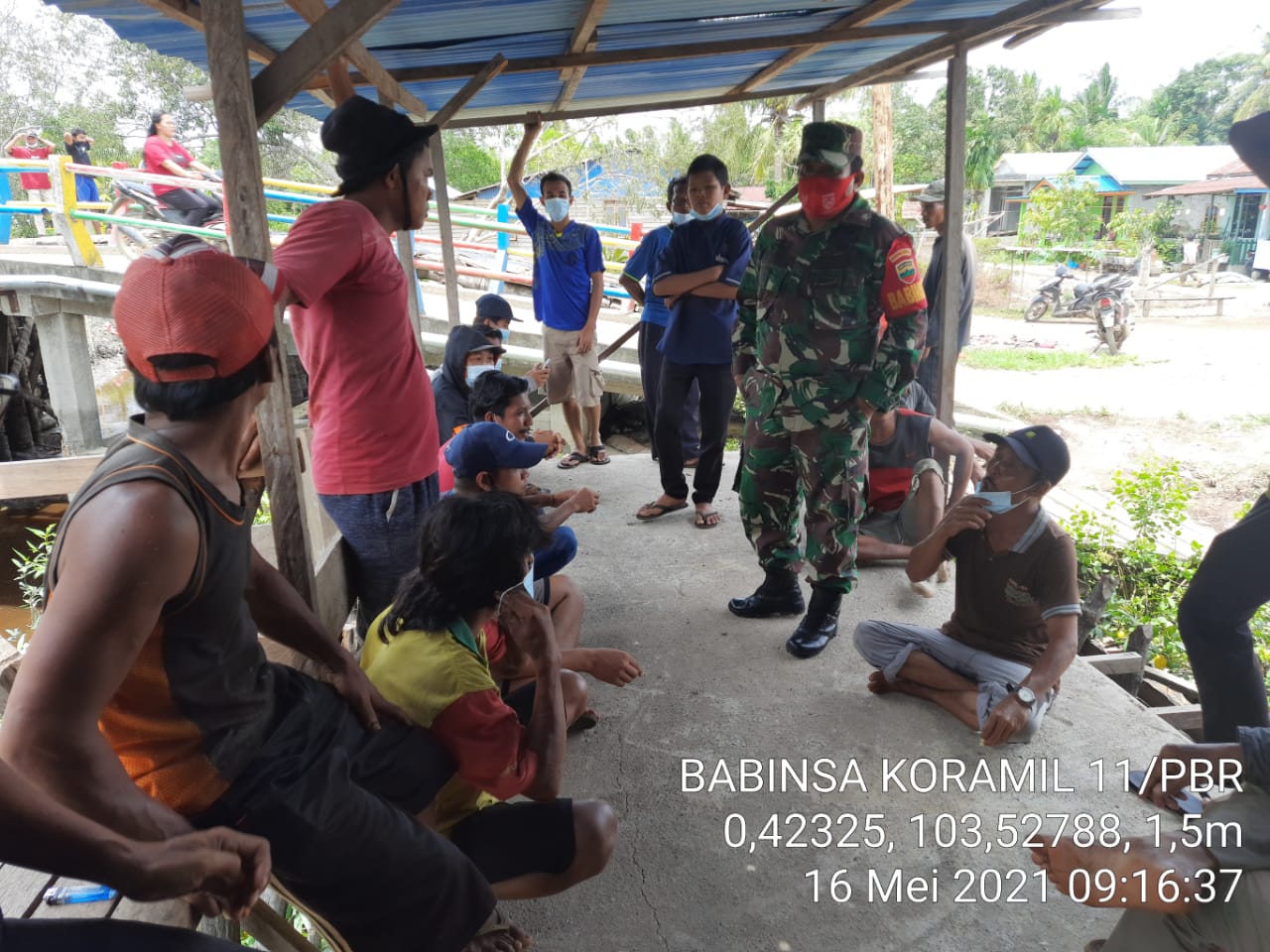 SERIBUPARITNEWS.COM, Babinsa Koramil 11/Pulau Burung Kodim 0314/Inhil Sertu Yanuarsyah Melaksanakan Komsos bersama warga dalam rangka Sosialosasi tentang prokes covid 19 berskala mikro Minggu (16/05/2021)