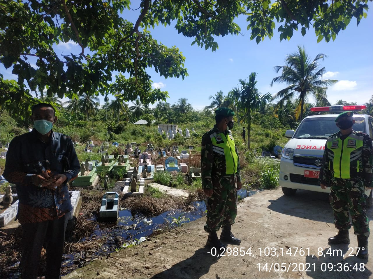 SERIBUPARITNEWS.COM, TEMBILAHAN - Pelda Indra Mukri Babinsa Koramil 01/Tembilahan Kodim 0314/Inhil Melaksanakan  pemakaman pasien Covid-19. An.Ny SH  Jumat (14/05/2021)