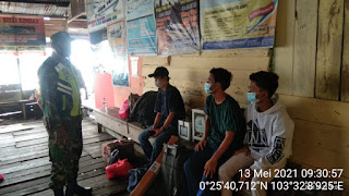 SERIBUPARITNEWS.COM, PULAUBURUNG - Di Hari Raya Idul Fitri Hari ini Babinsa Koramil 11/Pulau Burung Kodim 0314/Inhil Serda Supandi Jaya Tetap Melaksanakan Kegiatan Penegakan Disiplin Protokol Kesehatan Covid 19 Kamis (13/05/2021)