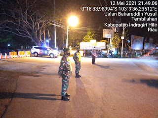 SERIBUPARITNEWS.COM,TEMBILAHAN - Pelda Indra Mukri Babinsa Koramil 01/Tembilahan Melaksanakan Penegakan disiplin terpadu protokol kesehatan dan Penyekatan Jalan Malam Takbiran tadi malam Rabu (12/05/2021)