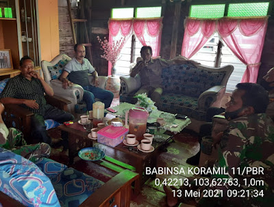 SERIBUPARITNEWS.COM, PULAUBURUNG - Babinsa Koramil 11/Pulau Burung Kodim 0314/Inhil Sertu Yanuarsyah melaksanakan silaturahmi dan lebaran bersama kepala Desa dan warga Kamis (13/05/2021)