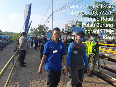 SERIBUPARITNEWS.COM, PULAUBURUNG - Babinsa Koramil 11/Pulau Burung Kodim 0314/Inhil  Serda Siswanto dan Babinkamtibmas Bripka Feri melaksakan Kegiatan Penegakkan Disiplin  Protokol Kesehatan Covid-19 Rabu (12/05/2021)