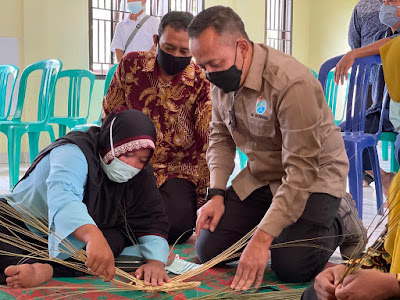 Kepala Desa Rumbio Makmur, Kecamatan Tapung, Kabupaten Kampar, Rustamaji, mengucapkan syukur setelah kelompok usaha kerajinan lidi pelepah sawit yang diolah menjadi peralatan dapur seperti piring, mangkok, dan lainnya kembali menggeliat usai dibantu perusahaan perkebunan milik negara tersebut.
