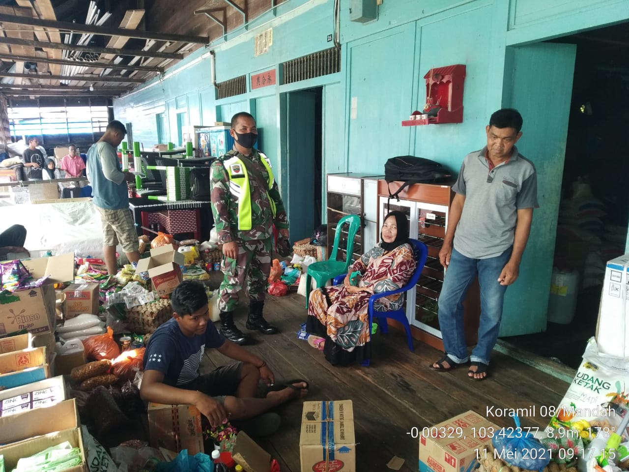 SERIBUPARITNEWS.COM, MANDAH - Babinsa Koramil 08/Mnadah Kodim 0314/Inhil Serda Erik A. Sibarani melaksanakan penegakan disiplin protokol kesehatan Covid Selasa (11/05/2021)