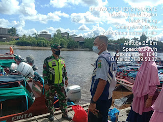 Untuk mengantisipasi penumpukan penumpang yang menyebabkan kerumunan, Babinsa Koramil 05/Gas,  Kopda Umar Nasution bersama dishub melaksanakan penegakan disiplin protokol kesehatan di pelabuhan sped bot Teluk pinang  Kecamatan Gas, Kab Inhil Senin (10/05/2021)