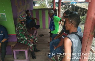SERIBUPARITNEWS.COM, PULAUBURUNG - Babinsa Koramil 11/Pulau Burung Kodim 0314/Inhil Serda Siswanto Melaksanakan Kegiatan Komsos dengan warga desa Minggu (09/05/2021)