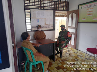 SERIBUPARITNEWS.COM, PULAUBURUNG - Babinsa Koramil 11/Pulau Burung Kodim 0314/Inho Serda Supandi Jaya  Melaksanakan kegiatan Komsos dengan Kepala Desa dan Skertaris Desa Jumat (07/05/2021)