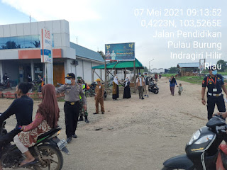 SERIBUPARITNEWS.COM, PULAUBURUNG - Babinsa Koramil 11/Pulau Burung Sertu Yanuarsyah bersama anggota Polsek, Security PT RSUP,anggota Puskesmas dan Humas PT RSUP melaksanakan kegiatan Penegakan Disiplin protokol kesehatan Covid-19 Jumat (07/05/2021)