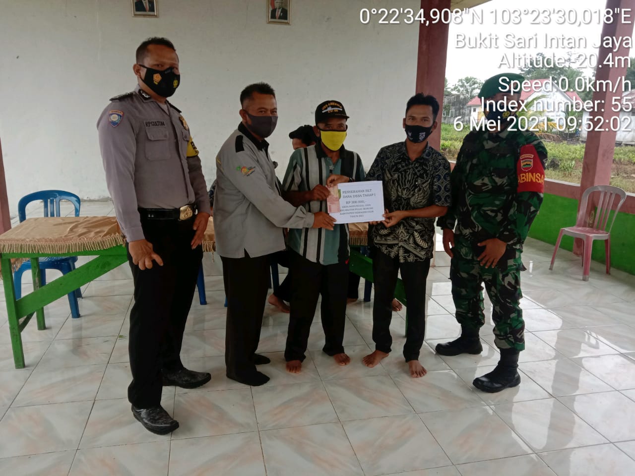 SERIBUPARITNEWS.COM, PULAUBURUNG - Praka Dedi Hariyawan Babinsa Koramil 11/Pulau Burung  Melaksanakan kegiatan penyaluran  Bansos di desa manungal Jaya Kamis (06/05/2021)