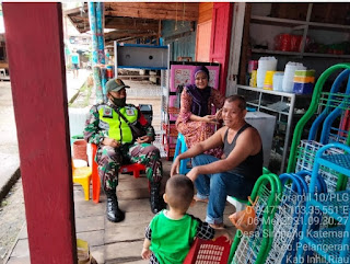 Dengan keakraban dan suasana kekeluargaan Babinsa menegaskan kembali warga wajib memakai masker dan menjaga jarak