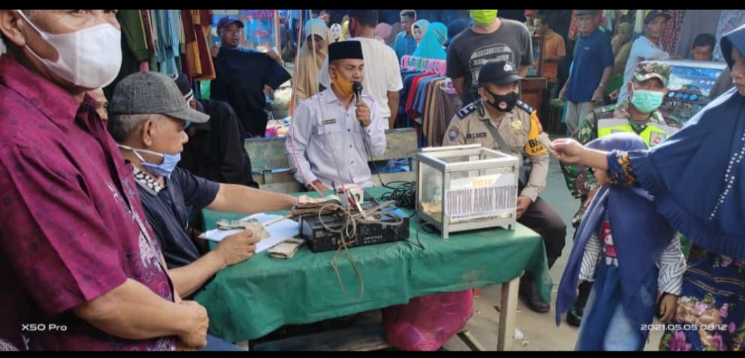 Hasbullah jali kepala Desa Belantaraya tidak hanya berdiam diri, beliau turun ke pasar dan melakukan sosialisasi dan himbauan kepada warganya di pasar belantaraya Rabu (05/05/2021)