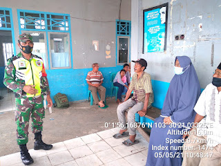 SERIBUPARITNEWS.COM, MANDAH - Babinsa Koramil 08/Mandah Kodim 0314/Inhil  Serda Tulus melaksanakan kegiatan   Prokes Covid-19 Rabu (05/05/2021)