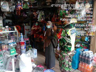 SERIBUPARITNEWS.COM, GAUNG ANAK SERKA - Babinsa Koramil 05/Gas,  Kopda Umar Nasution melaksanakan penegakan disiplin protokol kesehatan kepada Pemilik Toko di kelurahan Teluk Pinang kecamatan Gaung Anak Serka Rabu  (05/05/2021)