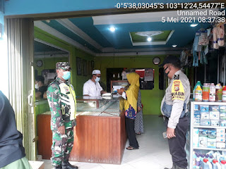 SERIBUPARITNEWS.COM, GAUNG ANAK SERKA - Babinsa Koramil 05/Gas Serka Sasmito bersama anggota polsek melaksanakan penegakan disiplin protokol kesehatan di Pasar Desa Belantaraya Kecamatan Gaung Rabu (05/05/2021)